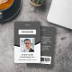Un badge d'identification photo minimaliste et moderne pour les professionnels de l'entreprise et les employés d'entreprise dans un thème classique noir et blanc. Customisez avec le logo de votre entreprise et la photo de l'employé, changez la couleur de l'arrière - plan ou partez comme indiqué ici. Ajoutez votre URL pour le code QR sur le dos ou supprimez si nécessaire. Il y a une zone de texte pour ajouter des informations supplémentaires au verso. Veuillez naviguer dans la collection d'insignes d'employé/d'entreprise de votre nom d'employé.