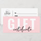 Ihr Logo Pink Minimal Geschenkgutschein. Fügen Sie Ihr Logo an die Vorderseite, um es zu Ihrem eigenen zu machen. Dieses lustige und einfache Geschenkgutschein ist als lange horizontale Karte konzipiert, perfekt für Firmen, kleine Unternehmen oder Einzelpersonen wie Makeup-Künstler, Ästhetiker, Haarstylisten und mehr! Das aktuelle Design ist in Rosa, Schwarz und Weiß gehalten, aber Sie können die Farben an den Stil Ihrer Marke anpassen. Die Vorderseite zeigt eine schicke und berufliche Mischung aus moderner Schrift und Schrift. Auf der Rückseite werden Ihr Logo und Ihre Geschäftsdetails auf der links Seite angezeigt, während auf der rechten Seite Platz zum Schreiben in die Information des Empfängers vorhanden ist. Ein elegantes und funktionales Design für ein geschmackvolles Geschenkerlebnis.