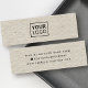 Miniprodukt-Display-Karte mit zentrierter Logo-Vorlage und Social Media-Icons auf einem hellbraunen DRUCKEN Leinenlook Hintergrund. Die Ohrring-Hilfslinien können durch Hinzufügen und Entfernen von Leerzeichen im Vorlagenfeld und durch Verschieben des gesamten Elements im Entwurfstool eingestellt werden.