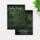 Cette carte, audacieuse et distinctive, comporte des supports d'espace modèle où vous pouvez ajouter votre propre logo ou graphique à l'avant et les coordonnées à l'arrière. L'arrière - plan de la carte était recouvert d'un graphisme artistique à texture grindeuse avec des lignes vintages et une superposition de feuilles dans un arbre ci-dessus. L'image est un vert foncé et profond.
