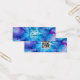 Lila und blaue Ohrring Mini-Produktsichtkarte mit zentrierter Logo-Vorlage und QR-Code auf der Rückseite. Die Ohrring-Hilfslinien können durch Hinzufügen und Entfernen von Leerzeichen im Vorlagenfeld und durch Verschieben des gesamten Elements im Entwurfstool eingestellt werden.
