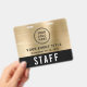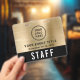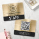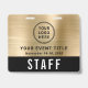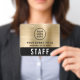Elevate your event with this custom black and brushed gold access pass badge featuring logo branding and QR code functionality. The front showcases your logo and event title in a clean, high-visibility layout, while the bold “STAFF” (or "CREW," "VIP," "VENDOR," etc.) designation ensures instant recognition from a distance. On the back, an optional large QR code provides a modern method for check-ins, credentials, schedules, or access control -- making this badge as functional as it is stylish. Perfect for corporate events, conferences, productions, and large-scale gatherings, this badge helps your team stay organized while reinforcing a polished, cohesive brand presence.
