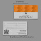 Élevez votre entreprise avec le certificat cadeau Logo QR Code Grey Black Orange, avec un design modèle terreux orange, gris et noir dans un format paysager pratique de 3,5" x 2". L'avant présente un motif en diamant orange sur la moitié supérieure et le bas, en texte noir sur gris. La carte a de l'espace pour un espace réservé de logo de l'entreprise, le nom de l'entreprise et dans l'élégant script "Un certificat cadeau pour vous", lui donnant un look poli et professionnel. L’envers est soigneusement organisé avec des champs personnalisables pour le nom du destinataire, le nom de l’expéditeur, la valeur, la date d’expiration et l’émetteur, ainsi qu’une zone désignée pour le code de suivi de votre société. Sous ces champs, il y a suffisamment de place pour que les termes et conditions soient clairs. À gauche, un code QR avec un appel à l'action, "Scan !", permet aux destinataires d'accéder facilement aux détails importants de l'utilisation ou des services. Le côté droit est réservé à vos informations commerciales essentielles, y compris votre site Web, votre courriel, votre numéro de téléphone et votre adresse physique. Ce certificat cadeau est un outil de marketing polyvalent idéal pour les petites entreprises de services comme les esthéticiennes, boutiques, gymnases, massage, spa etc. Customisez-le facilement en remplaçant le texte, le logo et les détails du code QR pour s'aligner parfaitement avec votre marque. Tous les éléments du modèle sont personnalisables en couleur. Pour plus d'informations sur l'image de marque et le marketing d'entreprise hors ligne, consultez www.KBMD3signs.com. Si vous avez besoin d'aide pour la personnalisation ou si vous avez des questions, n'hésitez pas à nous contacter à info@KBMD3signs.com .