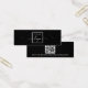 Mini-Produkt-Display-Karte mit schwarzem Ohrring mit zentrierter Logo-Vorlage und QR-Code auf der Rückseite. Die Ohrring-Hilfslinien können durch Hinzufügen und Entfernen von Leerzeichen im Vorlagenfeld und durch Verschieben des gesamten Elements im Entwurfstool eingestellt werden.