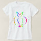 Ein herausgeschnittenes Bild von Desiree de Rabbitt in einem netten Regenbogen. Addieren Sie Ihren Namen oder Mitteilung oder ändern Sie die Hintergrundfarbe, um etwas zu machen, das mit freundlichen Grüßen ist.