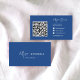 Simple white on blue logo name script hair makeup qr code with a brushed script typography add your business photo . Add your social media. With an elegant signature script font, all the colors are editable , add your logo.Move the letters to create your logo.