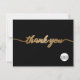 Personalisieren Sie diese einfache und einfach zu handhabende danke flache Kartenvorlage mit dem Logo, der Website, der Nachricht, dem Firmennamen, der Website und dem Handle der sozialen Medien (löschen Sie alle Symbole, die nicht mit dem Button "Weiter anpassen" anwendbar sind). Lass deinen Kunden, Kunden, Patronen, wissen, dass du dankbar für ihre Unterstützung bist, personalisiere die Danksagung, wenn nötig. Einfache, schicke, moderne Typografie-Skript in Imitaten Golddruck auf schwarz. Tipp: Verwenden Sie die weiße Version Ihres Logos, gerettet als PNG auf einem transparenten Hintergrund.