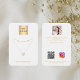 Eine Grafikkarte für Ihren handgefertigten Ohrring oder Schmuck. Weißer Hintergrund, goldener Text. Personalisieren und hinzufügen Sie Ihr Firmenlogo und Kontaktinformationen auf der Vorderseite. Zurück: Fügen Sie Ihr eigenes Foto auf der Rückseite ein und nutzen Sie die Gelegenheit, Ihren Kunden die Geschichte Ihrer Marke zu erzählen. Nichtgewollt löschen. Fügen Sie Ihre URL dem QR-Code zu Ihrem Instagram-Konto hinzu. Symbol für Instagram.