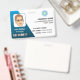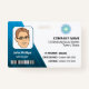 Dieses beruflich aussehende Firmenkennzeichen ist für den Geschäftsführer eines Unternehmens bestimmt. Das Design ist ein Corporate-Look mit einem blauen abstrakten Detail auf weiß und ein Platz für das Firmenlogo und Bar Code.