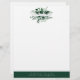 Das elegante botanische Letterhead-Design zeigt Ihren Namen und/oder Firmennamen, gerahmt durch eine Aquarellwand in Jägertönen und Waldgrün. Fügen Sie Ihre geschäftlichen Kontaktdaten unten in Weiß hinzu, um dunkelblau zu koordinieren.