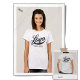 Ein minimales, einfaches Vorder- und Rückseite Print Tshirt mit Ihrem Logo. Fügen Sie Ihr Bild hinzu. [Auch mit Frontabdruck erhältlich: https://www.zazzle.com/front_print_business_logo_company_swag_women_black_t_shirt-256927389522468564 ]