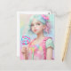 Mit dieser Postkarte mit der von AI generierten Porträtkunst - ein reizendes Mädchen, das einen Lollipop in traumhaften Pastelltönen hält - wird ein Peitschenstoß verschickt! Diese bezaubernde Kreation erweckt das Wesen zuckerhafter Freuden und fantasievollen Charme.