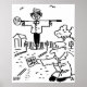 Lollipop Man benutzt freie Lollipops, um ein Skarecrow zu machen. Cartoon mit einem Lollipop-Mann, Überquerungswache, Straßenbegleiter oder Schulstraße-Patrouille