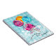 Farbenfrohe Trio aus wirbelnden Lollips in einem lockigen Bogen mit karierten und Sternen auf diesem kleinen Rezept Notizbuch für Süßigkeiten und Konfektionen.