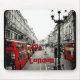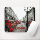 Schwarz-Weiß-Szene in London mit selektiver Farbe auf den roten Bussen entlang der Straße.
