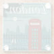 Untersetzer mit dem Bild eines roten Londoner Telefonkabels gegen die London Skyline.