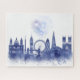 London Skyline Watercolor Splash Blue von Fab Funky. Hier finden Sie die berühmten Londoner Sehenswürdigkeiten in einem Aquarell-Stil.
