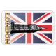 Ein Vintages Design mit einem Schwarz-Weiß-zeichn von Big Ben, platziert über der Union Jack.