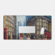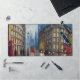 A street scene à Londres's financial district on a rainy evening Rendered in impressionist style by AI.