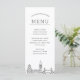 Menus culinaires personnalisés pour votre prochain événement sur le thème du mariage dans la belle ville de Londres. Il présente une illustration de style déco de l'horizon urbain. Vous trouverez ci-dessus des points pour obtenir des informations uniques et des informations sur le menu des événements. À l'envers, une couleur gris nickel avec un espace pour votre propre message unique à vos invités mariages.