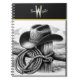 Ein verwitterter Cowboy-Hut, der sich auf einem Holzpfosten neben einem gekochten Seil unter dem weichen Glühen eines Feuerzeugs ruht.