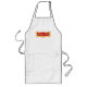 Le tablier du grand chef blanc semblant, avec des graphiques d'une plaque décorative rouge et goldtone, sur le secteur de coffre. Le texte blanc de manuscrit, sur la plaque, est entièrement personnalisable pour lire ce que jamais vous voulez. Grand tablier pour les chefs professionnels, restaurants, services de approvisionnement de boulangeries, ou juste pour à la maison, dans votre propre cuisine.