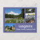 Postkarte mit Fotos, die in Longmire im Nationalpark des Berges Rainier aufgenommen wurden. Zu den Fotos zählen das National Park Inn, die historische Tankstelle, die Longmire Springs und der Blick auf den Berg Rainier von Longmire.
