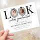 Celebrate a milestone in modern style with this quirky graduation party invitation. Featuring a clean white background and the fun saying “look who’s graduated”, the design cleverly uses the “O” as a photo frame, complete with a chic black bow and a grad cap for a playful yet elegant touch.