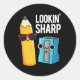 Lookin Sharp Funny Pencil Pun Dark BG Runder Aufkleber