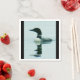 Loon & Reflexion über blass blaues Wasser. Foto mit schwarzen Rändern.