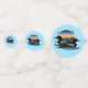 Ein paar Löwen auf dem See mit einem warmen Sonnenuntergang, alles Set vor einem blauen Hintergrund
