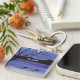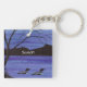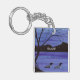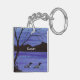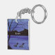 Un tableau aquarelle de deux huards sur un lac en soirée orne ce porte - clé personnalisable !