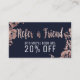 Moderne et fascinant l'or rose imprimé ce par faux floral et le bleu marine, se réfèrent un ami que la carte de référence de remise est parfaite pour l'entrepreneur à la mode et élégant. Cette carte de regard à la mode et professionnelle est la manière parfaite de montrer vos clients que vous vous inquiétez de leurs affaires. Customisez cette carte pour n'importe quelles affaires, juste éditez le texte et ajoutez vos propres détails personnels.