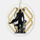 Diese Abbildung zeigt Lord Ayyappan, die verehrte hinduistische Gottheit, bekannt für seine unerschütterliche Hingabe und Disziplin, majestätisch neben einem königlichen Tiger stehend. Ayyappan wird mit seinem ikonischen Bogen und Pfeil dargestellt und symbolisiert seine Rolle als Beschützer der Rechtschaffenheit (Dharma). Seine Silhouette, die Kraft und Gelassenheit ausstrahlt, steht vor einem faszinierenden, goldenen geometrischen Hintergrund, der die Aura der Göttlichkeit und Tradition verstärkt. Der Tiger, ein Symbol für Tapferkeit und Mut, sitzt zu seinen Füßen und verkörpert Ayyappans Verbindung zur Natur und seine Rolle als Hüter der Gerechtigkeit. Dieses Bild ist eine perfekte Mischung aus spirituellem Power, Disziplin und dem göttlichen Schutz, den Lord Ayyappan seinen Anhängern bietet.