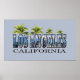 Großartiges Poster mit Los Angeles California. Das Stadtbild liegt in den Briefen, die von großen Palmen überragt wurden.