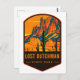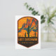 Ein Vintager Park Abzeichen Design des Lost Dutchman Staat Park zeigt Flacheisen in den Superstition Mountains in Arizona, USA.