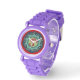 Cette montre fabuleuse présente le symbole AUM (ou OM) dans un design de fleurs de lotus dans les tons rouge, bleu et turquoise... une idée cadeau unique (ou pour vous-même !).