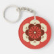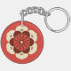 Porte - clé acrylique design de mandala japonais qui représente une fleur stylisée de lotus, symbolisant la pureté, éveil spirituel et fidélité - fleur en mandarine orange, crème, chocolat et or sur un arrière - plan orange mandarin