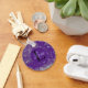 Eine stilvolle silberne verzierte Mandala in lila Kulisse mit silbernen Sternen, die auf einem glänzenden Silberrand auf dem Grund für extra Glanz regnen. Kann mit einem Buchstaben, Logo oder Namen in der Mitte auf einem lila Kreis angepasst werden. Whimsical verträumtes Gastgeschenk vibes. Teil der verzaubernden Mandala mit Whimsical Stars Collection.
