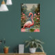 Ein schöner rosa Flamingo mit einem Lotusteich.