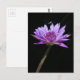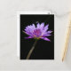 Ein Foto eines Libellen hoch oben auf einer schönen lila Lotus-Wasserlilie schmückt diese hübsche Postkarte!