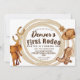 Les thèmes d'anniversaire du premier rodéo les Anniversaires de enfants d'invitation sont spéciaux, et cet invitation peut l'aider à faire une fête d'anniversaire mémorable. Calligraphie élégante sur arrière - plan lasso entouré d'accessoires cowboy : casquette, fer à cheval, selle, badge du shérif et bottes avec éperons.
