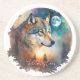 Ce dessous de verre rond en grès est représenté avec un imprimé d'aquarelle d'un loup. Customisez cet objet ou achetez comme indiqué.