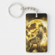 Grand loup éclair doré et design de pleine lune d'or brillant.