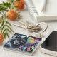 Illustration d'un loup aux yeux brillants à côté d'un attrapeur de rêve coloré, dans un décor cosmique impressionnant, évoquant le mystère, la spiritualité, et un lien avec la nature et les rêves.