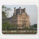 Dies ist ein Teil des Louvre Museums in Paris, Frankreich. Dieses Foto wurde im Frühling aufgenommen, und Tulpen sind im Vordergrund zu sehen. Es ist eine schöne Aufnahme der Fassade des Gebäude.