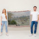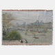 Der Louvre, der Frühling. Camille Pissarro. Frühlingslandschaft in warmen Farben. Ein breiter Fluss fließt durch die Stadt. Dampfschiffe fahren den Fluss entlang. Auf dem gegenüberliegenden Ufer gibt es große Gebäude. Es sind Wolken am Himmel. Reproduktion berühmter Kunstbilder im öffentlichen Bereich.