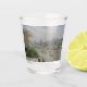 Der Louvre, der Frühling. Camille Pissarro. Frühlingslandschaft in warmen Farben. Ein breiter Fluss fließt durch die Stadt. Dampfschiffe fahren den Fluss entlang. Auf dem gegenüberliegenden Ufer gibt es große Gebäude. Es sind Wolken am Himmel. Reproduktion berühmter Kunstbilder im öffentlichen Bereich.