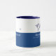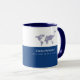 The map of the world, a small airplane... half-blue mug with a line for your name and special quote or slogan
