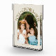 Moderne und minimalistische Familien-Erinnerungs-Fotoblock mit einem Foto in einem Bogenrahmen mit einem Text, der "Love Grows Here" mit kleinen Herzen sagt. Creme.